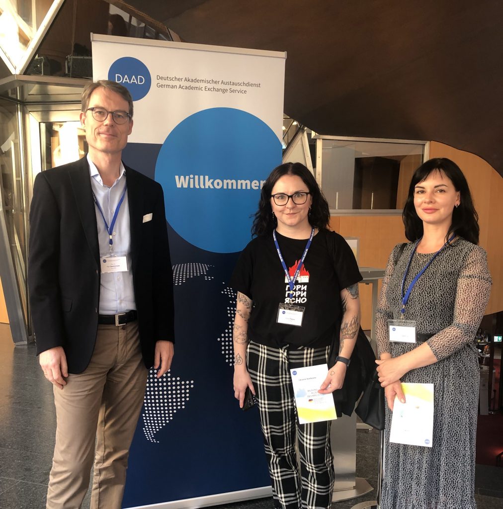Berlin, 27./28. September 2023. The DAAD (German Academic Exchange Service) recently held a Ukraine Conference in Berlin, inviting all teams from projects funded by DAAD aimed at fostering collaboration between Ukrainian and German universities. Representing our team were Anna, Tetiana, and Kai, who eagerly participated in discussions under the conference theme, “Education in Times of Conflict: German-Ukrainian Higher Education Collaborations between Emergency Aid and Shaping the Future.”