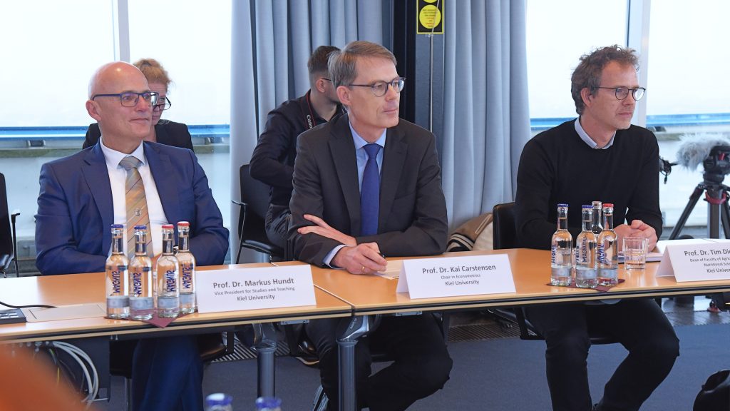 Prof. Dr. Kai Carstensen spoke about the academic collaboration between KSAEU and Kiel University: Since 2022, CAU has been supporting its partner university in southeastern Ukraine with digital teaching operations under the challenging conditions of the Russian war of aggression.